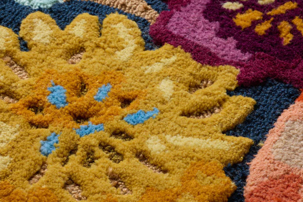 Discover our unique, handcrafted Vintage Blossom Artwork. Embroidered vibrant flowers cascade across this piece with warmth and texture. Each artwork is custom-framed, ensuring a slight variation in dimensions for a truly special touch.