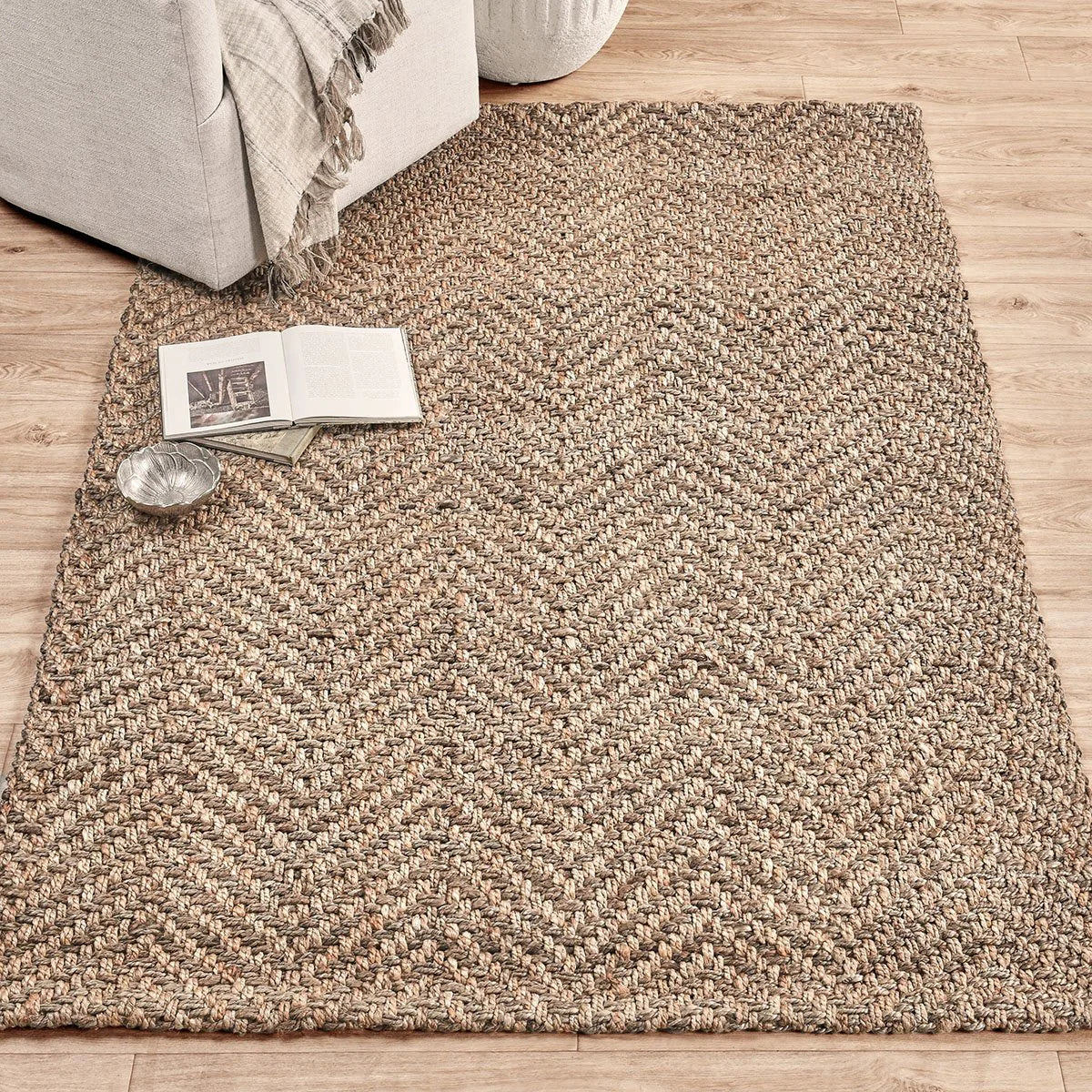 Our CDH Terik Sand Jute Rug features a thick, subtle-textured geometric pattern. It is hand-woven with natural, eco-friendly, and sustainable 100% jute for indoor medium traffic. Its modern aesthetic adds sophistication to any space, while its quality craftsmanship ensures lasting satisfaction.