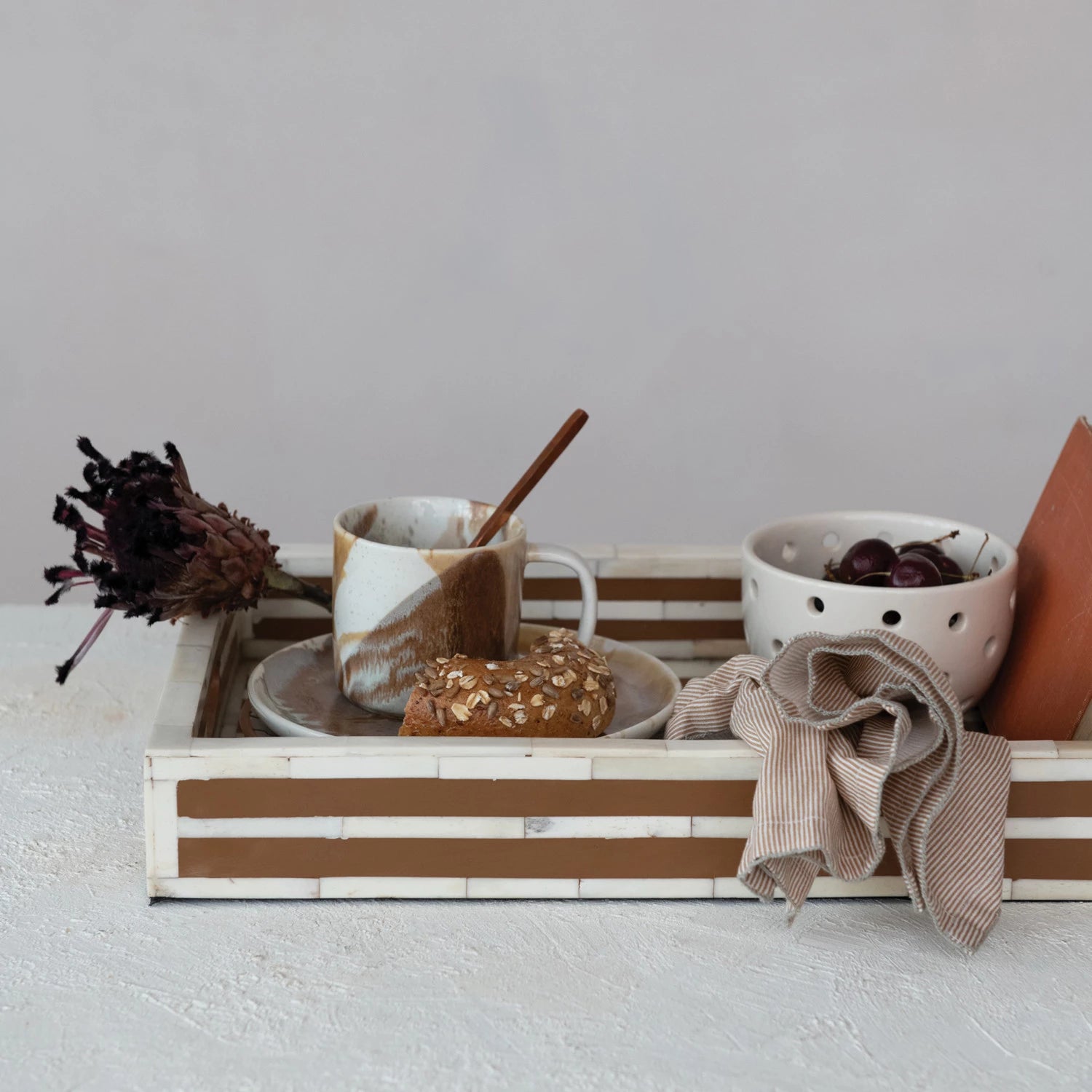 Our Bone Inlaid Tray adds a sophisticated touch to your home. Its natural hue and organic design make it an easy transition to any home décor. Easy to use for organizing items, or simply adding warmth to any room.