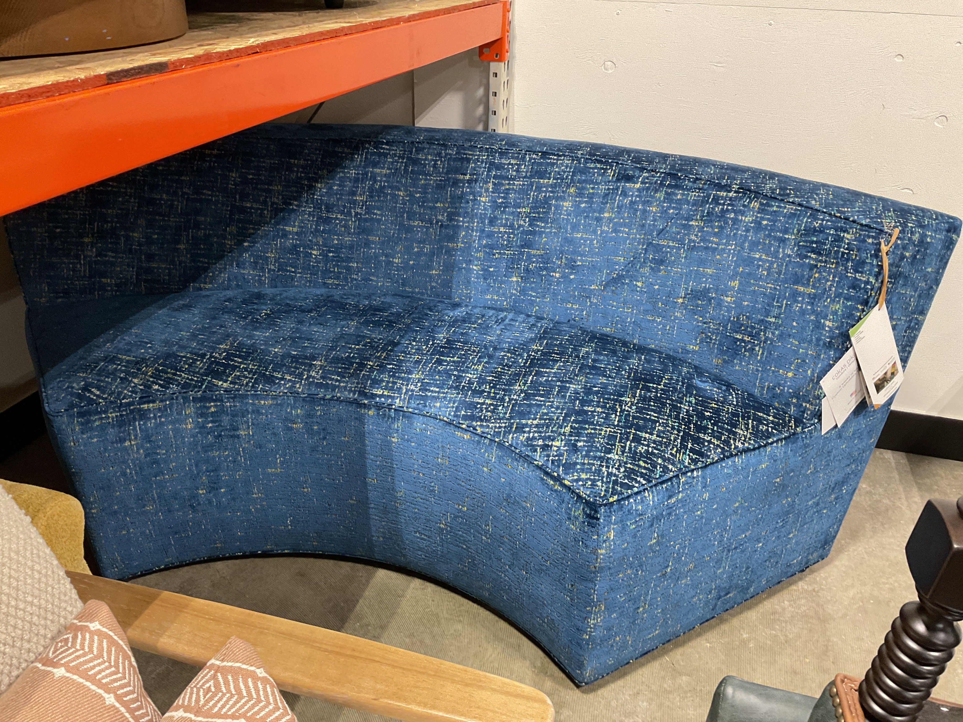 Norwalk Large Curved Settee BLUE POLY Fabric is backordered and will ship as soon as it is back in stock.