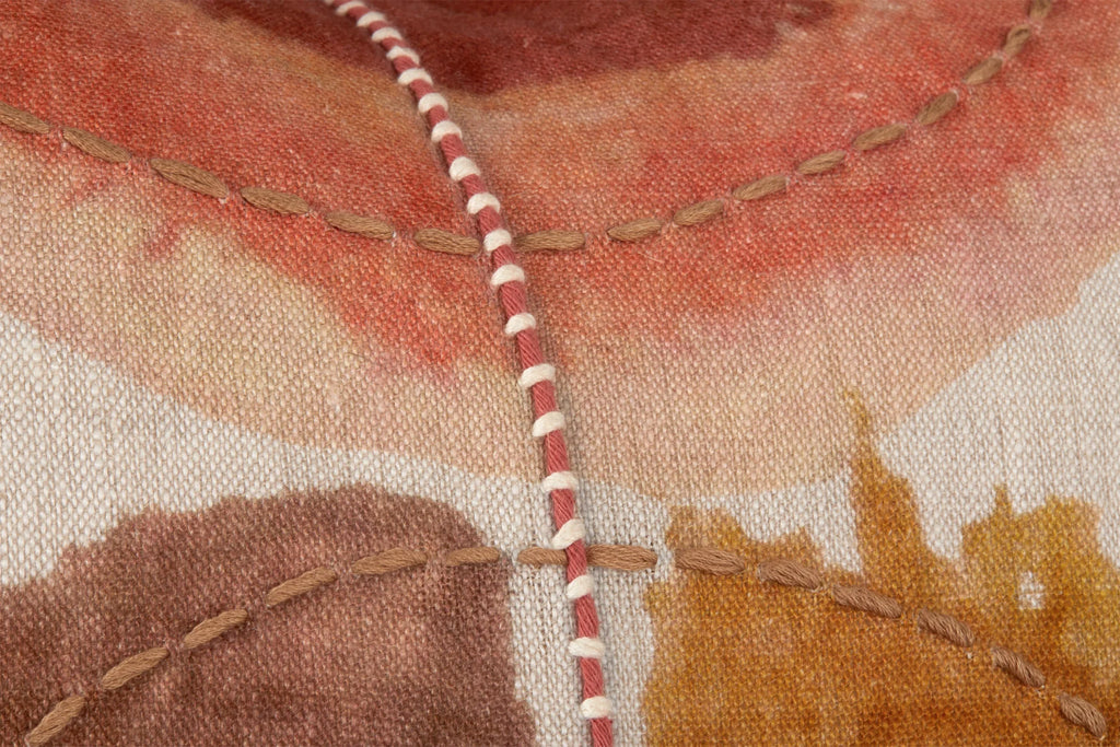 Cotton Bolster Pillow w/ Embroidered Flowers 18x8