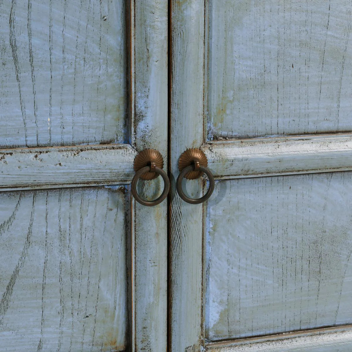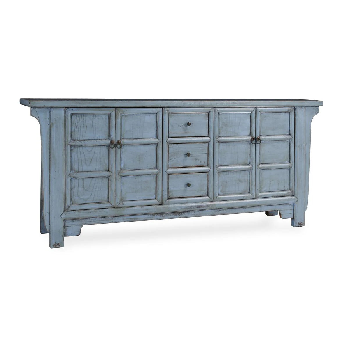 Reclaimed Pine Blue 3 Drawer 4 Door Cabinet 77" is backordered and will ship as soon as it is back in stock.
