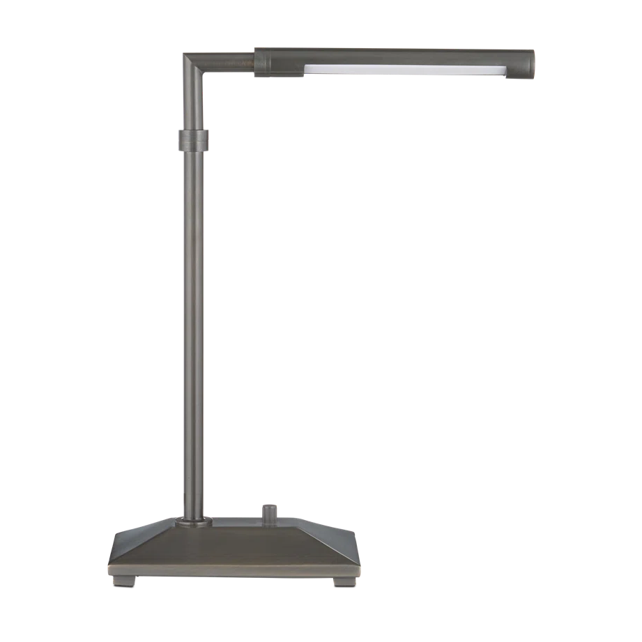 The Autrand Desk Lamp is a versatile fixture that swivels and allows its adjustable tubular shade to direct light in various directions. Made of metal with simple lines, it complements various interior styles, including contemporary. The lamp features a dimmer switch and uses integrated LED technology.