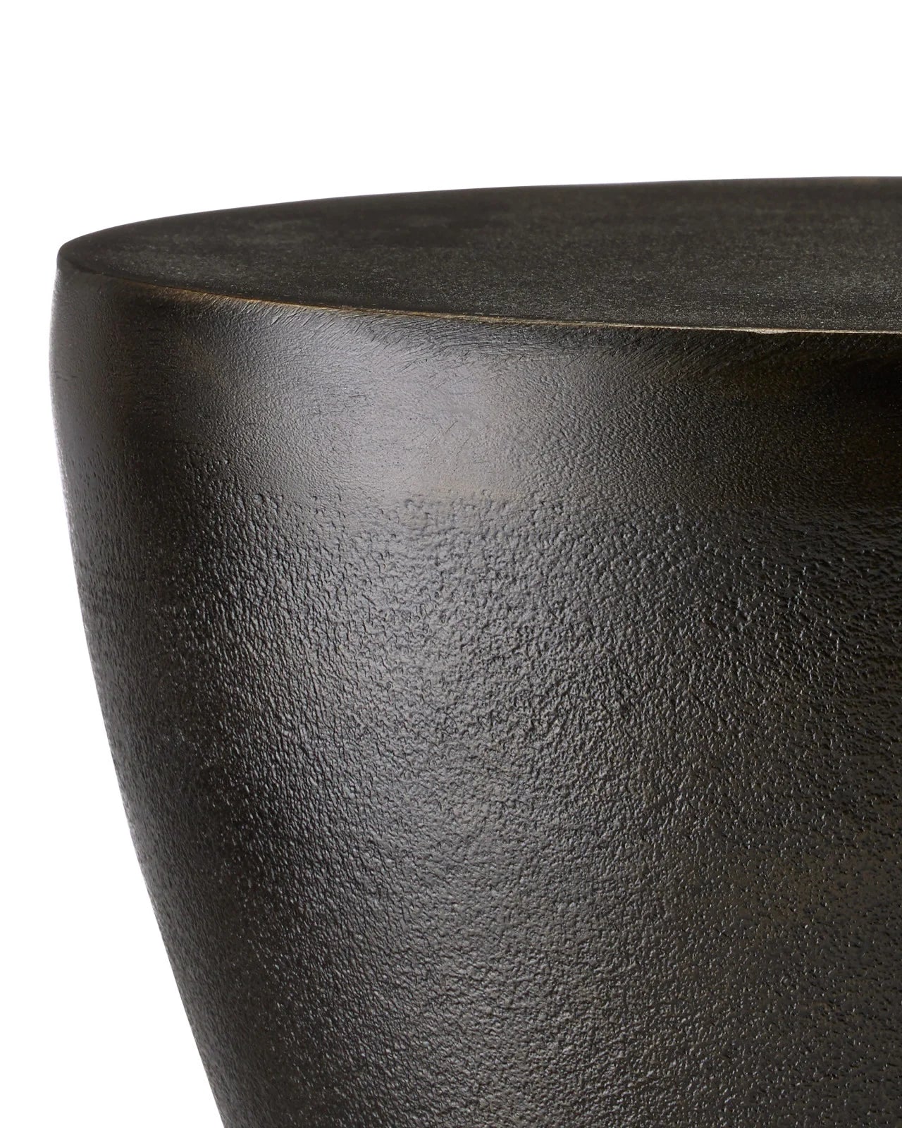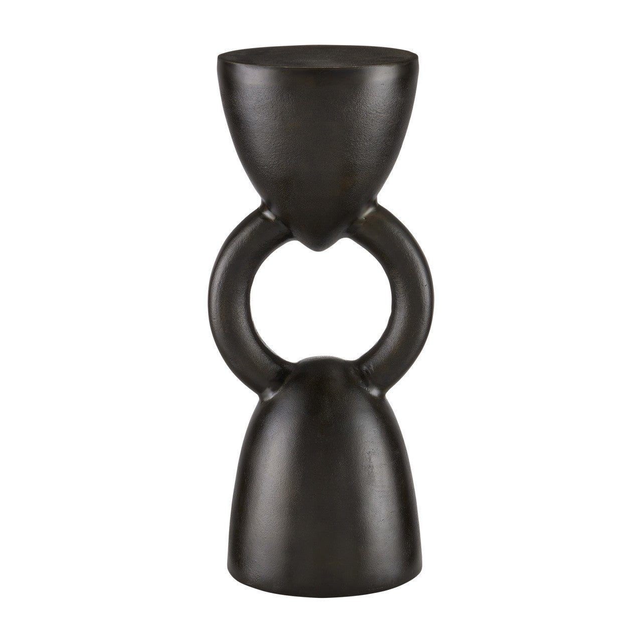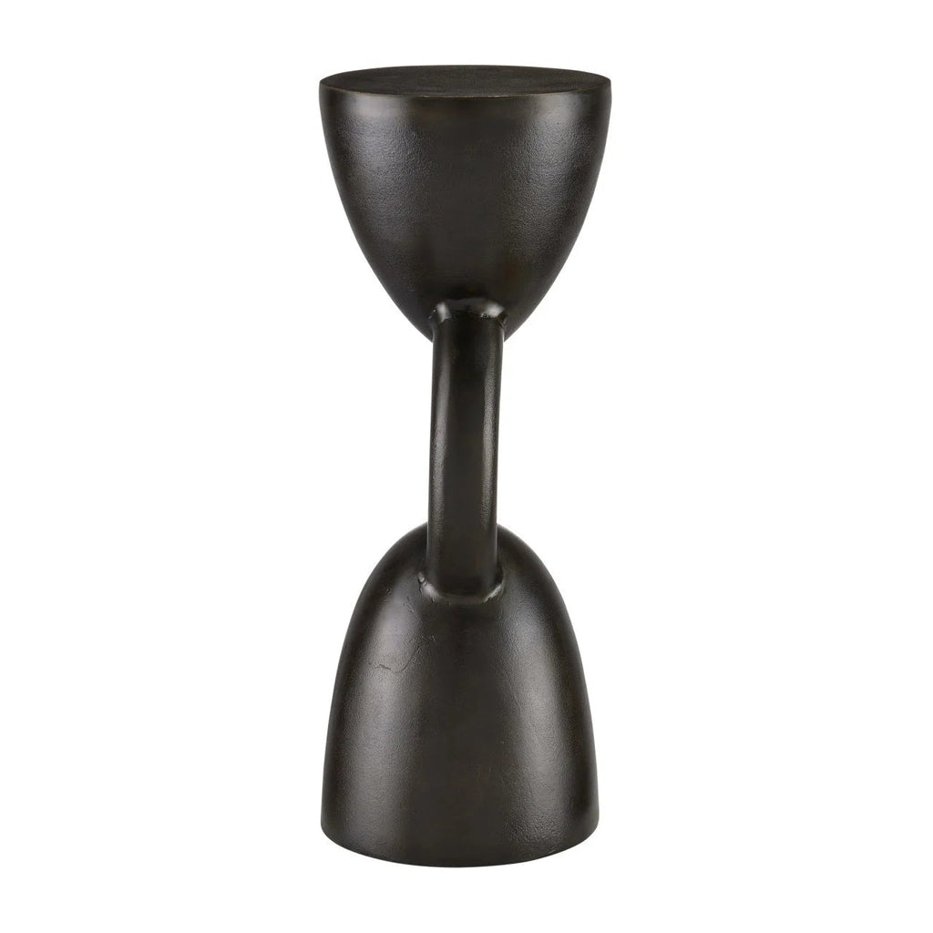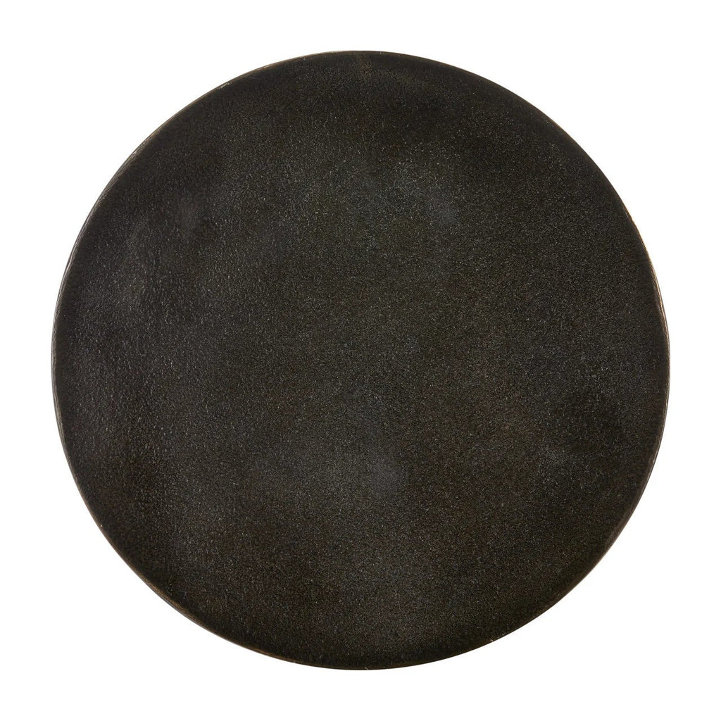 The Delle Black Drinks Table features a design inspired by the Bronze Age, but with a modern twist. It is made of cast aluminum with a bronze finish, giving it a sturdy feel despite its small size. This black drinks table can also fit into a rough luxe style.