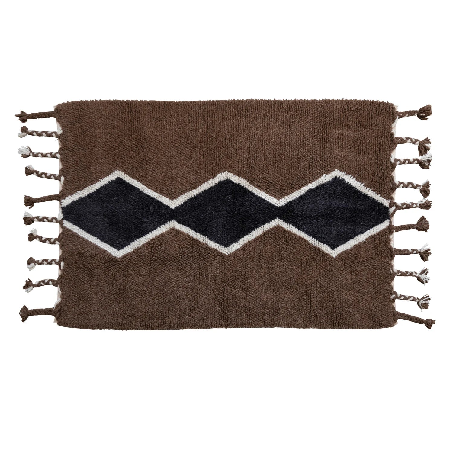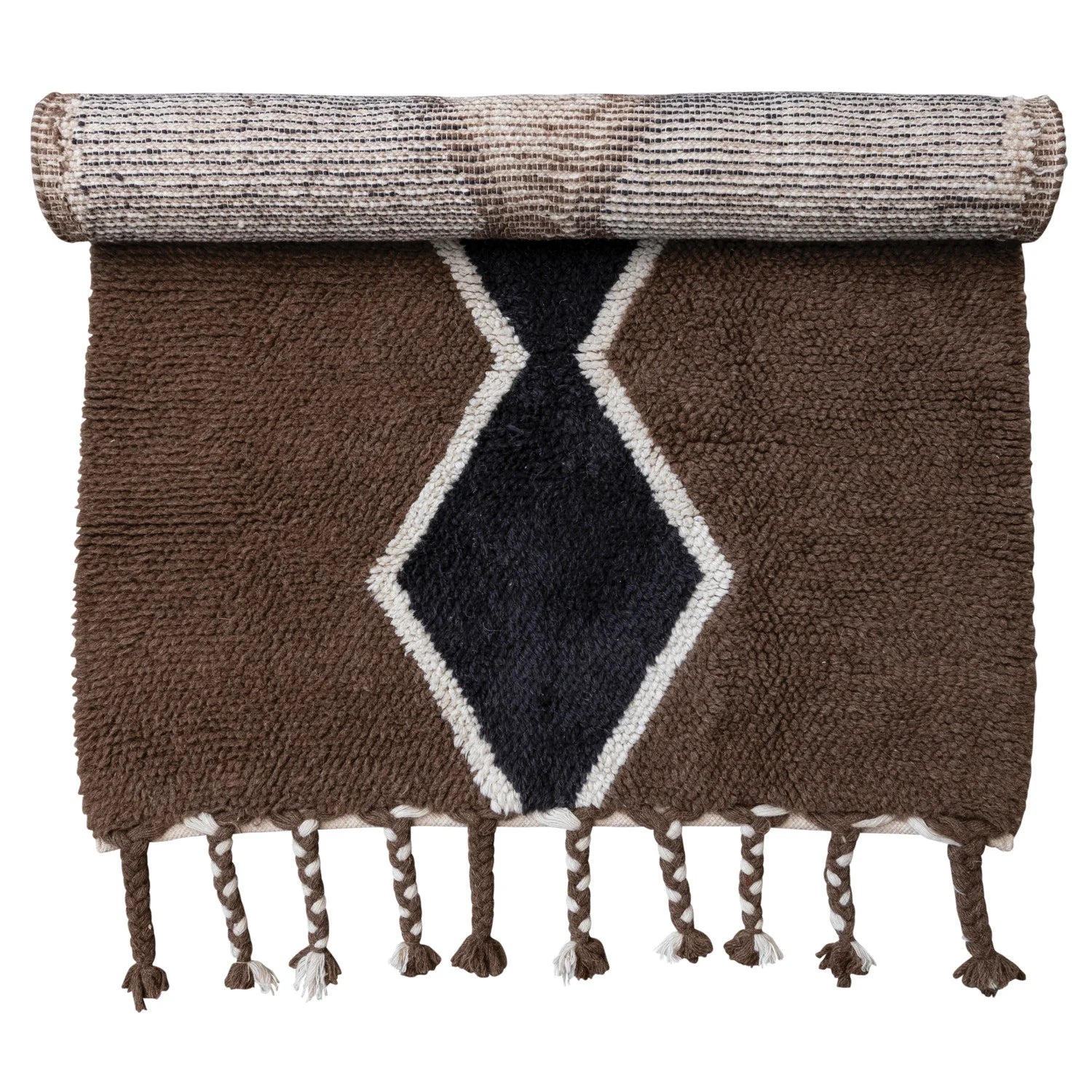 Discover this stunning Scandinavian-inspired floor rug, beautifully handwoven from wool, featuring a delightful tufted diamond design and charming braided tassels. Perfectly suited for any living or dining space, from boho chic to global elegance. Easy to care for with spot cleaning. Crafted from high-quality wool.