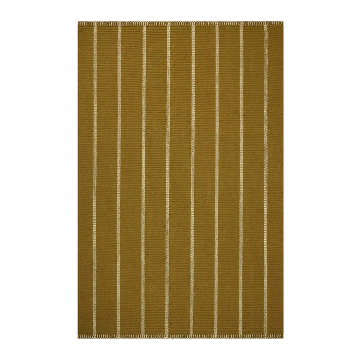 The Harlan Collection by Amber Lewis x Loloi is a classic striped flatweave area rug in the interior designer signature warm, earthy tones. The rug has a chunky wool pile with whipstitch borders that add character and natural texture to living rooms, bedrooms, and other well-loved areas of the home. This collection is hand-woven in India and GoodWeave-certified, ensuring our commitment to ethical production and the support of weavers communities.