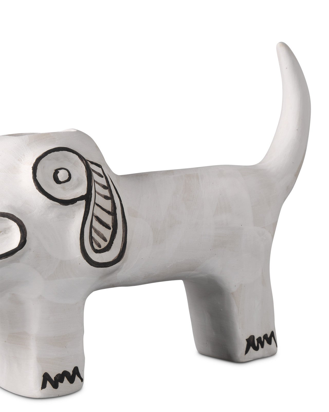 Artist Xiang Yang crafted "Spot the Dog," a striking porcelain vessel in a washed-white finish with whimsical black details. This unique piece is reminiscent of the stirring impact Picasso's ceramics had during his time in the South of France.
